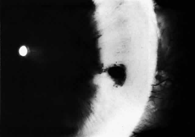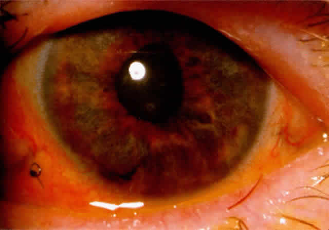 when the patient is first seen, the eye will likely show a quick