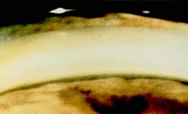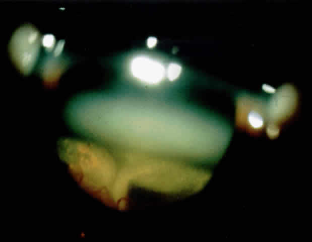 A neglected acute angle-closure attack may show a striking gonioscopic picture. Occasionally, if the attack resolved spontaneously, or if it was medically broken, the angle reopens to such an extent that it may be difficult to believe that angle closure was responsible for the attack. In such a case, the widening of the previously closed angle is due to the reduction in aqueous production, which may follow an acute attack. Some peripheral anterior synechiae may persist after the resolution of the acute phase and may bear witness to the fact that the angle was previously closed. In the fundus, peripapillary hemorrhages, exudates, and disc edema may follow resolution of an acute attack with high pressure. In severe relapsing attacks, the anterior chamber angle often is closed permanently by peripheral anterior synechiae around all or part of the angle circumference. Although the symptoms may improve with decreased tension due to decreased aqueous production, the eye may develop high pressures when normal aqueous production resumes. The natural course of the disease shows that delayed treatment of an acute episode may lead to permanent synechial angle closure, and even permanent blindness in 2 to 3 days. Differential Diagnosis Any painful congested eye may mimic acute angle-closure glaucoma to some degree, but usually such common disorders as keratoconjunctivitis, corneal abrasion or foreign body, and trauma are readily distinguished by careful history and examination. Certain other disorders may mimic acute angle-closure glaucoma more closely, however. NEOVASCULAR GLAUCOMA Neovascular (hemorrhagic) glaucoma often presents as a painful congested eye with high intraocular pressure, corneal edema and cells, and flare in the anterior chamber. There may be an associated history of diabetes mellitus or retinal vascular occlusion with sudden painless loss of vision months before inflammation of the eye occurred. On examination, this entity is distinguished by rubeosis, a fine network of abnormal arborizing vessels on the iris surface, which extends over the angle structures. One need see only a few arborizing vessels on the meshwork to make this diagnosis. Broad peripheral anterior synechiae are often associated with a mat-like membrane with blood vessels, which gradually progresses and contracts to close the entire angle, sometimes obscuring the extensive network of new vessels that initiated angle closure. ACUTE IRITIS Acute iritis with secondary glaucoma may cause blurred vision with halos, occasionally moderately elevated intraocular pressure, and cells in the anterior chamber. The onset is usually more gradual than that in acute angle-closure glaucoma. Often, keratic precipitates are present and the pupil is miotic. Most importantly, the anterior chamber usually is not abnormally shallow and gonioscopy shows an open angle. If the view is obscured, gonioscopy of the fellow eye will usually reveal a wide open angle. GLAUCOMATOCYCLITIC CRISIS Glaucomatocyclitic crises or Posner-Schlossman's syndrome usually presents with recurrent attacks of visual blur, halos, cells in the aqueous, and an elevated intraocular pressure. This can often be distinguished by the presence of a few keratic precipitates, which never occur in primary angle-closure glaucoma itself, and by an open angle. PHACOLYTIC GLAUCOMA Phacolytic glaucoma also may produce a painful congested eye with blurred vision and high intraocular pressure. However, in addition to keratic precipitates, the angle is open, there is a cataract, and a hypopyon is sometimes present. The cataract is usually very advanced or mature, but in rare cases, an immature cataract may be present. PHACOMORPHIC GLAUCOMA Phacomorphic glaucoma presents as asymmetric central shallowing of the anterior chamber in the presence of a unilateral advanced or mature intumescent cataract. The intraocular pressure is elevated but there is no evident inflammatory reaction in the aqueous. The fellow eye shows a normal anterior chamber depth and an open angle on gonioscopy. This secondary angle-closure glaucoma is caused by enhanced pupillary block due to lens enlargement. Increased lens apposition to the iris results. Once the diagnosis is made, initial treatment with mydriatics and cycloplegics may be sufficient to deepen the anterior chamber and relieve the relative pupillary block. Laser iridotomy may then be performed as a temporary measure followed by cataract removal. CYSTS OR TUMORS OF THE IRIS AND CILIARY BODY Cysts or tumors of the iris and ciliary body cause secondary closure of the angle. The most common of these are intraepithelial cysts of the iris and ciliary body. When these are present, they may narrow the angle and predispose to acute angle closure. When they are present around much of the circumference of the angle, the entire angle may close; when they are present segmentally, they cause only partial angle closure. One should suspect cysts or a tumor if there is abrupt localized bulging of the iris in the periphery in one or more areas. If the pupil can be widely dilated, one can sometimes see the cysts in the posterior chamber by using a gonioscopy lens. If these cysts are closing the angle, or if they enlarge such that they obscure the visual axis, they can usually be collapsed using laser to puncture them. This can be performed directly through a dilated pupil via the transpupillary route with a mirrored gonioscopy lens using the argon laser. When the cysts cannot be seen through the dilated pupil, they may be collapsed by penetrating the cyst anteriorly through the anterior iris stroma with a Nd:YAG laser. Laser therapy is a simple, noninvasive, and atraumatic technique, which we believe to be the procedure of choice for treatment of these cysts. |