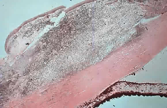 nongranulomatous. Extensive anterior chamber cellular reaction and fibrin