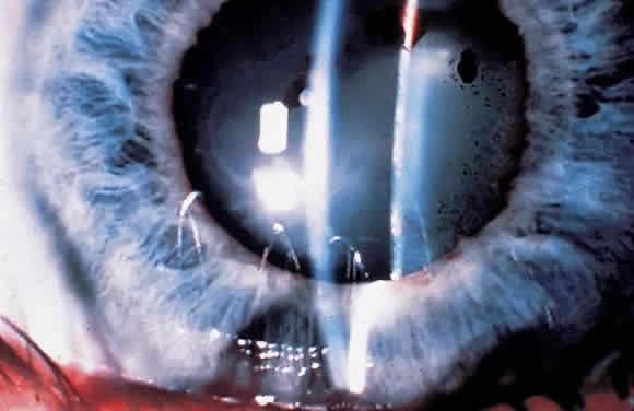 eye appears quiet, with minimal anterior chamber cellular reaction