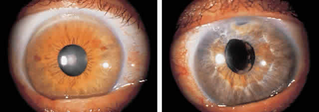 in the corneal stroma.76 Acutely it produces an opacified, edematous cornea with deep vascularization. It