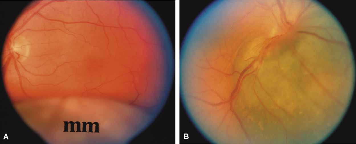 (Data from International Committee for the Classification of the Late Stages of Retinopathy of Prematurity: An international classification of retinopathy of prematurity: II. The classification of retinal detachment. Arch Ophthalmol 105:906, 1987, and Tasman WS: Retrolental fibroplasia. In Tasman WS (ed): Retinal diseases in children. New York: Harper & Row, 1971:59–69)