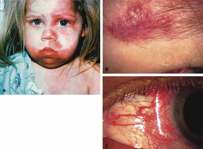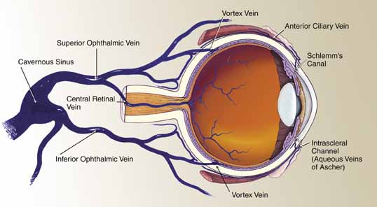 OTHER TRABECULAR MESHWORK INSULTS Foreign Body Siderosis Long periods of exposure of intraocular toxic metals such as iron can cause damage to the cells of the trabecular meshwork. Thus, an open-angle glaucoma can ensue that may be recalcitrant to treatment. The unilaterality may be confusing, particularly when the previous ocular history is unknown and the foreign body is occult (Fig. 9).48 Intravitreal Steroids Intravitreal steroids,49 both depot and the newer delayed release implants,50 have been proposed for the treatment of recalcitrant macular edema or exudation from diabetes, uveitis, macular degeneration, and other conditions.51 As might be expected, these have been found to cause clinically significant pressure elevations in some individuals.52,53,54 As such, intravitreal steroid treatment mandates careful monitoring of intraocular pressure in these patients. RAISED EPISCLERAL VENOUS PRESSURE A review of the aqueous blood microcirculation of the eye (Fig. 10) explains how raised venous pressure can affect both retinal vessels and intraocular pressure. From Schlemm's canal, aqueous traverses the intrascleral emissary channels (aqueous veins of Ascher) to the episcleral plexus and then the long ciliary venous vessels. The long ciliary veins, as well as the vortex veins, empty into the ophthalmic vein before entering the cavernous sinus. Increases in episcleral venous backpressure theoretically contribute to a 1:1 mm Hg rise of measured intraocular pressure. The clinical result of an acute rise in external venous pressure may include choroidal effusion, elevated intraocular pressure with blood in Schlemm's canal (Fig. 11), and retinal vein obstruction with intraretinal hemorrhages in a central vein obstruction pattern with or without prominent swelling of the optic nerve. Chronic elevations of venous pressure may permanently damage trabecular meshwork, impairing outflow facility, and result in a chronic open-angle glaucoma. Superior Vena Cava Syndrome Obstruction of the venous inflow to the heart may be due to mediastinal tumors, aortic aneurysms, goiters, and enlarged hilar lymph nodes among other causes. A central retinal vein obstruction picture results with engorgement of the retinal veins, peripapillary retinal edema, and elevated intraocular pressure.55 The pressure becomes elevated in the supine position. Correction of the underlying obstruction is ideal, but topical pressure medications may be somewhat effective. Carotid–Cavernous Fistula A true shunt between the carotid and cavernous sinusoidal venous system (high-flow type) occurs in 25% of cases and usually results from trauma.56 The more common situation (75% of cases) is a vascular shunt between a dural branch of the external or internal carotid (usually meningohypophyseal branch) and the cavernous sinus (low-flow type).56 There is some evidence that vestigial dural shunts may be congenital and expand when an obstruction occurs in the transverse and sagittal venous drainage systems of the brain.56 The net effect is a direct transmittal of arterial pressure to the retinal and choroidal venous system, which may produce several syndromes. Recent work involving more precise radiologic studies suggests that the specific clinical presentation is determined by the exact location of the vascular anomaly.57 Ocular hypoxia produced by reduced flow may lead to iris neovascularization and glaucoma.58 The more common cause of elevated intraocular pressure is chronic venous pressure elevation that results in permanent damage to the trabecular meshwork. Rarely, vortex venous backpressure may produce choroidal edema, effusion, rotation of the ciliary body, and a congestive glaucoma (Fig. 12).59,60 High- and low-flow arteriovenous shunts pose no threat to human life but have been the object of prodigious surgical efforts. The indications for the surgery should remain intractable eye pain or threatened loss of the eye or other neurological deficits. Shunt flow may be reduced by arterial closure, direct shunt closure, or venous ligation. All these methods, except direct shunt closure, may exacerbate hypoxia and induce iris neovascularization.61 Sturge-Weber Syndrome The Sturge-Weber Syndrome is a sporadically occurring phakomatosis that consists of a diffuse choroidal hemangioma, facial nevus flammeus (dermal angioma) (Fig. 13), meningeal angioma with “tram-track” calcification of the brain, and an ipsilateral glaucoma often seen when the dermal angioma involves the upper lid (Fig. 14). The glaucoma may present in infancy or the late teens. In infancy, the glaucoma mechanism may be similar to congenital glaucoma (abnormal trabecular bands) and differ from the later-onset form, which may result from elevated episcleral venous pressure.62 Phelps63 demonstrated elevated episcleral venous pressure in this syndrome and related the extent of the episcleral angioma (often more obvious at surgery when conjunctiva was reflected) to the severity of the glaucoma. Recent work demonstrated thickening of the trabecular beams with abnormalities of the outflow structures, possibly induced by the abnormal vasculature present during embryogenesis.64 Regardless of the exact mechanism, most authorities agree that standard filtration methods carry a high risk of expulsive choroidal hemorrhage. If filtra-tion surgery is contemplated, Bellows and co-workers65 recommend prophylactic sclerostomies prior to decompression of the eye to avoid intraoperative choroidal detachments that may occur in these patients, even when choroidal hemangiomas are not present. Meticulous flap closure that avoids hypotony is the mainstay to preventing choroidal detachments.66 Preoperative scatter laser photocoagulation over the hemangioma, even in the absence of serous retinal detachment, may also reduce the risk of choroidal exudation prior to filtration surgery.66 |