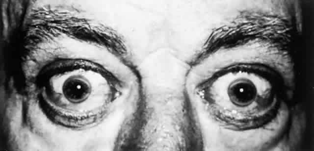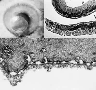 Dry eye is discussed in detail in another section (see index). Management of dry eyes consists of providing supplementary tears in mild cases and mucolytic agents (e.g., acetylcysteine [Mucomyst]) if ropy discharge is a problem. Filaments should be removed when they occur. When artificial tears are needed for symptom relief more than five times a day, a preservative-free solution should be used because preservatives are toxic to the epithelium,242 and an ointment tear preparation should be added. Lubricating ointments may be needed more frequently during the daytime than at nighttime to alleviate symptoms, but blurriness of vision becomes a problem. Patients should maximize the humidity of the environment, using humidifiers or a side panel and moisture inserts on their glasses.243 Irreversible punctal occlusion by electrocautery should be performed on any patient who has consecutive Schirmer test values of less than 2 mm and who is symptomatic. In borderline dry-eye patients, punctal occlusion can be achieved by using silicone plugs, which can be removed if epiphora results. Collagen shields are used as a trial before permanent occlusion with cautery is performed. Topical cyclosporin A has shown symptomatic benefits. 244 Marginal Ulceration/Melting Marginal corneal ulceration or melting also occurs in a number of conditions in the autoimmune or vasculitis category of systemic diseases. The exact pathogenesis of the lesions is unclear at the present time but may involve local ischemia or collagenase production. Keratoconjunctivitis sicca should always be ruled out because sterile corneal ulceration may be associated with dry eyes. Adequate lubrication with preservative-free tear and ointment supplements is important. Acetylcysteine (Mucomyst 20%), used 4 to 6 times daily, is a mucolytic that decreases disulfide links of mucoproteins that may be beneficial in some cases. Topical high-dose corticosteroid may relieve associated scleritis and prevent progression of ulcerative keratitis. Later in the disease process, medroxyprogesterone acetate 1% (Provera) may be used as a topical antiinflammatory agent that does not inhibit collagen synthesis. If melting is progressive, a hydrophilic bandage contact lens may be helpful in promoting epithelial resurfacing; in thin corneas with impending perforation, a tissue adhesive may be applied. If this treatment is ineffective, a 3- to 5-mm resection of the conjunctiva adjacent to the furrow itself may be performed. Systemic immunosuppression is the definitive therapy. Marfan's Syndrome This disorder of connective tissue is described elsewhere in these volumes (see index). It has been shown that the corneas of patients with Marfan's syndrome are flat. The mean corneal astigmatism measures more than 2 diopters, compared with 0.6 to 0.8 diopters in a normal US population. Therefore, in patients with Marfan's syndrome, it is helpful to obtain routine keratometer readings prior to refraction.245 Megalocornea is another corneal abnormality found in patients with Marfan's syndrome. ENDOCRINE SYSTEM DISORDERS Diabetes Mellitus Corneal opacities, dry eyes, and changes in Descemet's membrane rarely have been observed in diabetes.246 It has become apparent that diabetics have a problem related to epithelial adherence to Bowman's membrane. Significant recurrent corneal erosions have been reported after intraocular surgery, and specifically vitrectomy, on such patients.247 In the nondiabetic cornea, corneal epithelial scraping results in rupture of the basal cells with maintenance of the basement membrane attachment to Bowman's layer. In the diabetic cornea, however, the entire epithelium separates as an intact sheet with the entire basement membrane remaining adherent to the basal cells (Fig. 31). Use of prolonged semipressure patching and bandage soft contact lenses is recommended in the event that such corneal changes occur after intraocular surgery. Thyroid Disorders In hyperthyroidism, common eye findings include widening of the palpebral fissure, lid lag on downward gaze, and infrequent blink. About 20% of patients develop proptosis (Fig. 32). If eyelid retraction and proptosis are severe enough, exposure of the cornea may result, with consequent drying of the epithelium, erosion, and possible infection. The earliest change is punctate staining of the inferior conjunctiva and cornea secondary to nocturnal lagophthalmos.248 If untreated, this corneal exposure may progress to persistent epithelial defects and stromal ulceration.248 Other eye manifestations include motility disorders and optic nerve compression of varying severity.