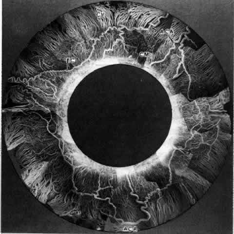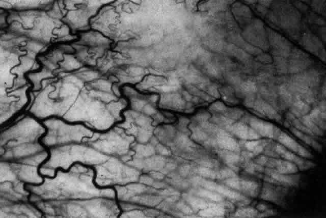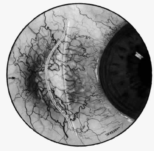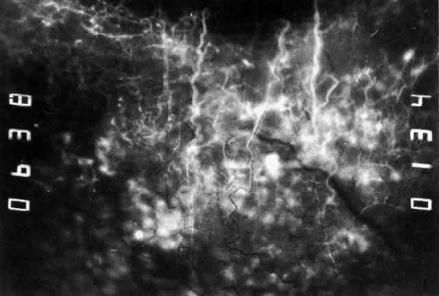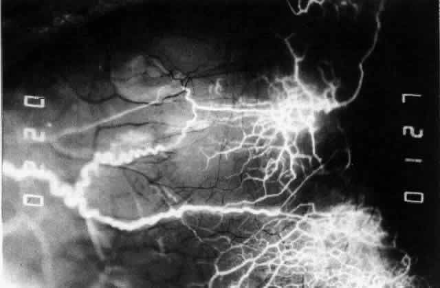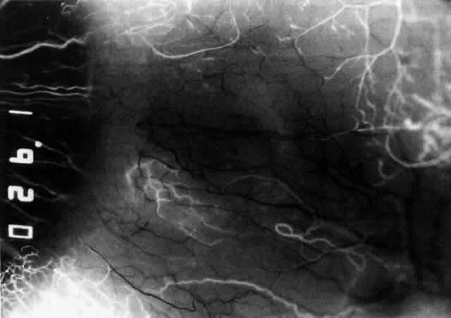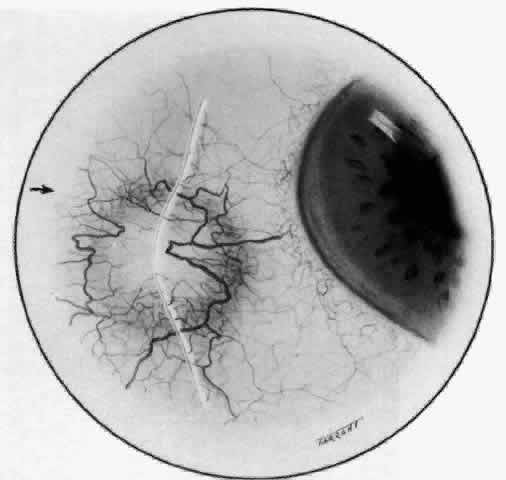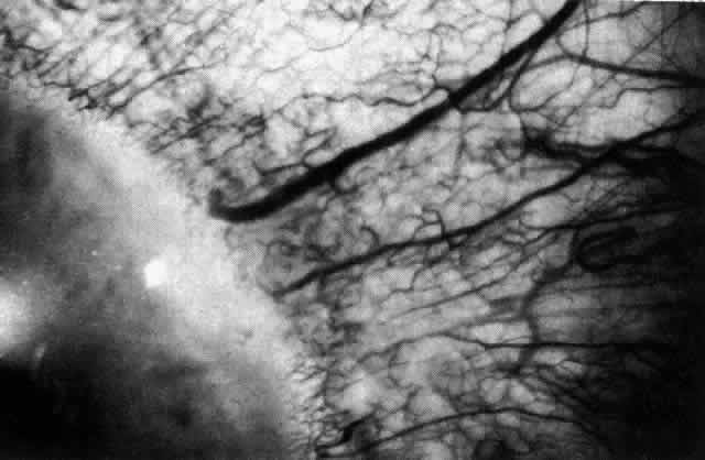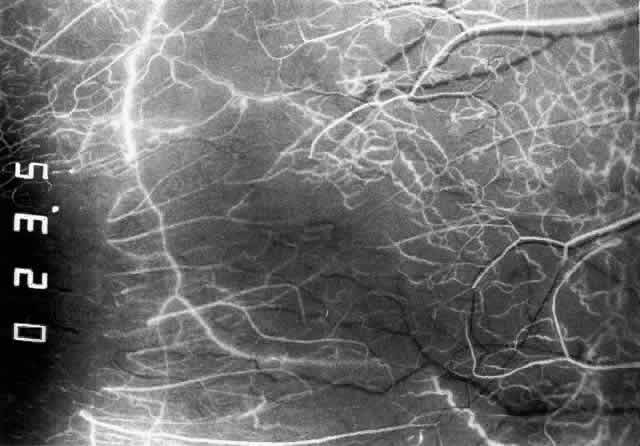 The direction of flow, the distinction between arteries and veins, and the integrity of the circulation can be determined only by the use of anterior segment fluorescein angiography.4,5 |