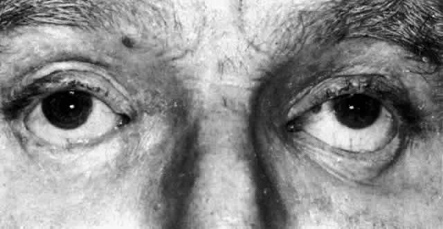 Glaucoma often occurs secondary to scleral disease. Applanation readings should be undertaken at the first visit and subsequently during treatment, especially if corticosteroids are used. Direct and indirect ophthalmoscopy are performed. This is particularly important in all cases of posterior scleritis or if cells are observed in the anterior or posterior chamber. Some patients with scleritis have granulomatous changes in the posterior segment that give rise to an exudative retinal detachment. Posterior scleritis and orbital disease such as pseudotumor, both of which involve the sclera and surrounding structures, will produce not only proptosis but also limitation of ocular movements. It is worth noting that these lesions can sometimes be completely symptom free even when the patient has developed a complete ophthalmoplegia (see Figs. 53 and 54).