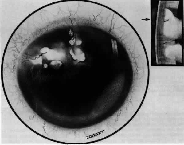 pigment cells of the basal epithelium of the conjunctiva (Fig. 76). Very rarely, pigmentation of sclera in white races may indicate an intraocular