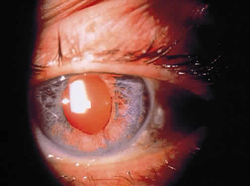 PAIN The pain of iritis is primarily related to ciliary spasm. The ciliary body is innervated by the trigeminal nerve, and pain caused by its inflammation may therefore radiate to the periorbital region and to the eye. Because branches of the trigeminal nerve supply the cornea and iris, inflammation of these areas can cause a retrograde reflex with vascular dilation and swelling in the ciliary body, the so-called axon reflex. Cycloplegia is therefore useful in cases of iritis and in some cases of keratitis because paralysis of the ciliary muscle alleviates the pain of ciliary spasm.3 PHOTOPHOBIA Photophobia (pain caused by light exposure) is often accompanied by tearing and blepharospasm. It must be distinguished from the photodysphoria or photoaversion in patients with achromatopsia, cone dystrophy, or retinitis pigmentosa and from glare caused by lenticular opacities. Photophobia is a prominent symptom in patients with inflammation of the iris or ciliary body and in patients with keratitis and scleritis because of the axon reflex. Again, cycloplegia may lessen photophobia and pain. BLURRED VISION Blurred vision may be caused by cloudy media, although vision is often surprisingly good in the presence of dense inflammatory reaction in the anterior chamber and vitreous. Floaters are a more frequent manifestation of cells and debris in the vitreous cavity. Macular edema, which frequently occurs with both anterior and posterior uveitis, can produce blurred vision, micropsia, and metamorphopsia. |