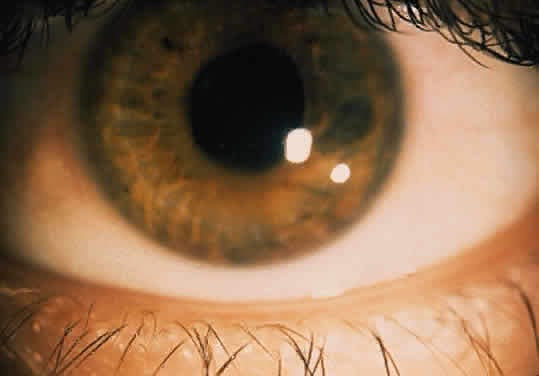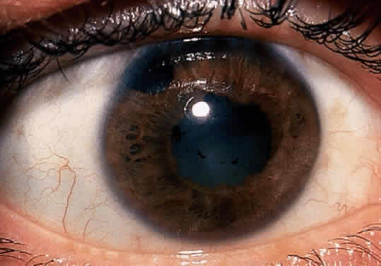 chamber contains a few cells. The anterior chamber angle is open throughout