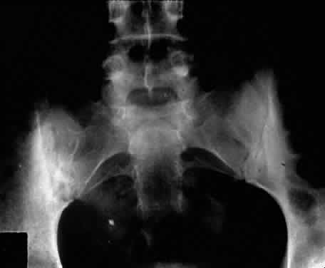 unknown.32–35 The associated arthritis and iridocyclitis, however, are similar in both conditions. Peripheral arthritis is seen in approximately 12% of patients with ulcerative colitis and approximately 20% of patients with regional enteritis. Radiographic evidence of sacroiliitis has been reported to show an incidence of approximately 18% and to be equal in both sexes in both conditions. Clinical spondylitis is seen in association with bowel inflammation in 4% to 7% of these conditions. The overall incidence of HLA-B27 in these two conditions may be slightly elevated, but is similar to that in the normal population. HLA-B27 is present in 53% to 75% of patients who have both spondylitis and inflammatory bowel disease. The sacroiliac involvement is frequently asymmetric (Fig. 5). It is not clear whether the spondylitis is secondary to the inflammatory bowel disease or to an overlap of the conditions. Spondylitis occurs before the bowel disease in 25% of patients, and there seems to be little correlation in the activity of symptoms between the sacroiliitis and the bowel disease. Colectomy does not affect the sacroiliitis, even when the bowel disease is improved. This is in contrast to the activity of the peripheral arthritis, which does seem to parallel the activity of the inflammatory bowel disease in 60% to 74% of patients. The peripheral arthritis also precedes the bowel disease in 7% to 11% of patients.33,36,37 It is not clear how these relate to the associated iridocyclitis.