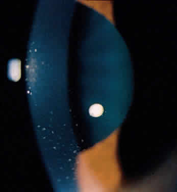conjunctiva. A few keratic precipitates may be present. The anterior