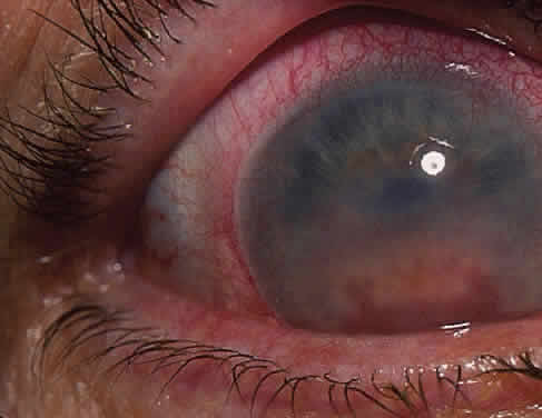 of an acute iridocyclitis, as in scleritis due to rheumatoid arthritis. The