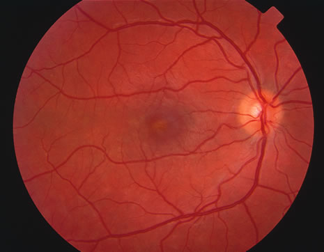 field loss and normal retina. There are no discernible retinal findings