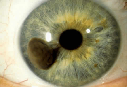 and metastatic tumors can also affect the iris. Nevus, malignant