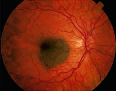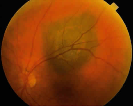 that occupies a full-thickness area of the posterior choroid.28,29 Clinically, it characteristically occurs as a well-delineated, sessile, yellow-orange