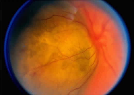 will be considered here. A lymphoid tumor of the iris appears as an amelanotic diffuse or circumscribed mass in the iris. In the choroid it appears as one or more yellow choroidal lesions that is indistinguishable from a choroidal metastasis (Fig. 21). The management of uveal lymphoma is the same as for uveal metastasis. Systemic chemotherapy should be employed for systemic disease, with the addition of ocular radiotherapy if it fails to achieve tumor control. |