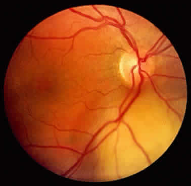 of the Sturge-Weber syndrome.26 Unlike uveal melanoma, uveal hemangioma occurs only in the choroid. Circumscribed choroidal hemangioma usually appears as a sessile or minimally elevated, redorange mass similar in color to the surrounding normal fundus. Smaller lesions (Fig. 18) are rather homogeneous and do not usually produce a secondary retinal detachment. Larger lesions can produce overlying proliferation or metaplasia of the retinal pigment epithelium and secondary retinal detachment. The diagnosis of circumscribed choroidal hemangioma is best made by recognition of the typical red-orange color of the choroidal mass. Such coloration is not usually seen with amelanotic choroidal melanoma, choroidal metastasis, and other choroidal masses. Fluorescein angiography and ultrasonography can be used to help confirm the diagnosis. Fluorescein angiography usually shows linear hyperfluorescence of the blood vessels in the tumor in the prearterial phase and rather intense late staining of the mass. A-scan ultrasonography shows high internal reflectivity, and B-scan shows acoustic solidity without the choroidal excavation that characterizes melanoma.26 Since circumscribed choroidal hemangioma is a benign lesion that usually remains stationary or demonstrates only minimal enlargement, asymptomatic tumors generally require no treatment. If the tumor produces a secondary retinal detachment that causes visual impairment, then laser photocoagulation to control the detachment is often warranted.26 In cases where the retinal detachment cannot be controlled with laser therapy and there is a threat of neovascular glaucoma, plaque brachytherapy can be successfully used. After approximately 2000 cGy, the tumor generally becomes smaller and the retinal detachment resolves. Diffuse choroidal hemangioma occurs ipsilateral to a facial nevus flammeus, sometimes in association with the Sturge-Weber syndrome.27 Clinically, it appears as a broad red-range thickening of the posterior choroid. The tumor appears more red than the background fundus, a finding sometimes called the “tomato ketchup” fundus. With time, the choroidal hemangioma produces cystic retinal degeneration and eventually an extensive secondary retinal detachment. The presence of an ipsilateral facial nevus flammeus in a patient with a nonrhegmatogenous retinal detachment should suggest the diagnosis.27 Ultrasonography and fluorescein angiography can provide diagnostic assistance. Cranial computed tomography or magnetic resonance imaging to detect the meningeal calcification of the Sturge-Weber syndrome may also provide diagnostic help. Diffuse choroidal hemangioma of the SturgeWeber syndrome can be difficult to manage. In its earliest stages, a refraction and treatment for hyperopic amblyopia is the best approach. Later, the secondary retinal detachment is best managed by laser photocoagulation or retinal detachment surgery, depending on the extent of the disease. External beam irradiation may bring about reduction of the retinal detachment. |