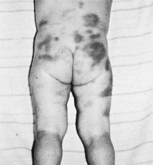 Physical examination may provide additional clinical evidence of child abuse (Table 2). Of course, accidental bruising and abrasion is part of normal childhood but these injuries are usually confined to the knees, anterior surface of the lower legs, the face, and other exposed areas. Accidental injuries do not follow artificial nonbiologic patterns, usually have a viable clear explanation, and are appropriate for the child's developmental level. Bruises that are found on certain parts of the body should raise the possibility of child abuse (Figs. 1 and 2). Bruises that predominate on the buttocks and lower back are often related to punishment (Fig. 3). Likewise, the abdomen and the back of the arms and legs are unusual sites for accidental injuries. Bruises can be morphologically similar to the implement used to inflict the trauma (Fig. 4).11,12 For example, the imprint of a belt buckle or hand may be seen clearly on a child's skin. Genital or innerthigh bruises may be the result of punishment for toileting mishaps. Bruises and scars at multiple stages of healing imply repeated abuse.