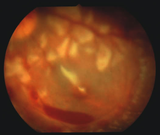 There remain still other theories for retinal hemorrhage in SBS that also seem to play a minor role. Some have suggested a Purtscher-like mechanism due to an increase in intrathoracic pressure when the perpetrator squeezes the child's chest. Although the characteristic white retinal patches of Purtscher retinopathy may be seen in SBS (Fig. 11), there appears to be no correlation with rib fractures,35 and the finding is very uncommon. The failure to see significant retinal hemorrhaging after the chest compressions of cardiopulmonary resuscitation in both animal models and humans also argues against a Purtscher-like mechanism. Differential Diagnosis The differential diagnosis of retinal hemorrhages in a child is vast. However, if one considers a child with the full spectrum of injuries seen in SBS, including brain, skeletal, and eye findings, most would not dispute that the retinal findings are due to nonaccidental injury. However, in a child with a small number of retinal hemorrhages and without retinoschisis, (Fig. 10A) the diagnosis of SBS may be less clear. The birth process is likely the most common cause of retinal hemorrhages in newborns, varying in several reports from 11% to 31% or higher.4,15,78 These retinal hemorrhages are most common after vaginal or vacuum-assisted vaginal delivery.79–82 The exact mechanism is unknown, but there is no association with brain hemorrhages in these infants.79,81,83 Prostaglandin release may play an important role. The distribution of retinal hemorrhages secondary to the birth process may extend from the posterior pole to the ora serrata. Most often they are limited to dot, blot, or flame-type of hemorrhages but preretinal and less commonly subretinal hemorrhage may also be seen.79,81,84 Although macular hemorrhages are common,82,85 schisis has never been observed despite the examination of thousands of children. All types of retinal hemorrhages due to the birth process resolve by 6 weeks of age with the exception perhaps of deep foveal hemorrhage. The majority of hemorrhages clear much earlier. Most flame-shaped hemorrhages resolve by 3 to 5 days, with all resolved by 1 week.86,87 Any retinal hemorrhages seen beyond these dates should arouse suspicion of another cause. Retinal hemorrhages seen within the first 6 weeks of life may also be due to SBS, and additional investigations must be considered when appropriate. Caretakers often relate histories of relatively minor head trauma as the cause of injuries that are otherwise generating the suspicion of SBS.21,34 After much study, most authors88–90 conclude that severe injury after a minor fall should raise the suspicion that the history is false and that the child has been abused. Furthermore, “most investigators agree that trivial forces such as those involving routine play, infant swings, or falls from a low height are insufficient to cause” the injuries seen in SBS.21,91 Even severe accidental head injury such as depressed skull fracture or intracranial hemorrhage does not routinely cause retinal hemorrhages.90,92,93 In compiling the available literature, retinal hemorrhage occurs in less than 3% of accidental head trauma, and then, almost always only in cases of severe, life-threatening injury.35,53,72,91,92,94,95 In the few cases of accidental head trauma with retinal hemorrhage, the bleeding is confined to the posterior pole with dot-blot, flame-shaped, or preretinal hemorrhages. Occasionally, these hemorrhages can extend to the midperiphery. But even the most severe accidental head trauma injuries do not cause the extensive retinal hemorrhages seen in SBS, except perhaps when the injury mechanism involves multiple acceleration-deceleration events such a motor vehicle accident in which the car strikes several objects or rolls consecutively resulting in death of the child. Retinochisis has not been observed after accidental head trauma, although there is one case of a child who may have suffered a severe crush injury to the head (five skull fractures with brain extrusion) and also a few adults with other causes of injury who have been observed to have paramacular folds or subinternal limiting membrane hemorrhage. These cases should not be taken to imply that in the SBS age range, macular schisis has a differential diagnosis other than SBS. There are a variety of other causes of retinal hemorrhage in children (Table 5). However, these are usually easily identified on the basis of history, systemic physical examination, or ocular examination. The retinal hemorrhages are almost always few in number and confined to the posterior pole unless there is predisposing retinal pathology which causes the hemorrhages to be located elsewhere (e.g. at the active ridge in retinopathy of prematurity). If an examining ophthalmologist finds retinal hemorrhage in a patient with these systemic problems, the physician must also attempt to understand if the disease could be the cause of the hemorrhages or if the child has been abused.