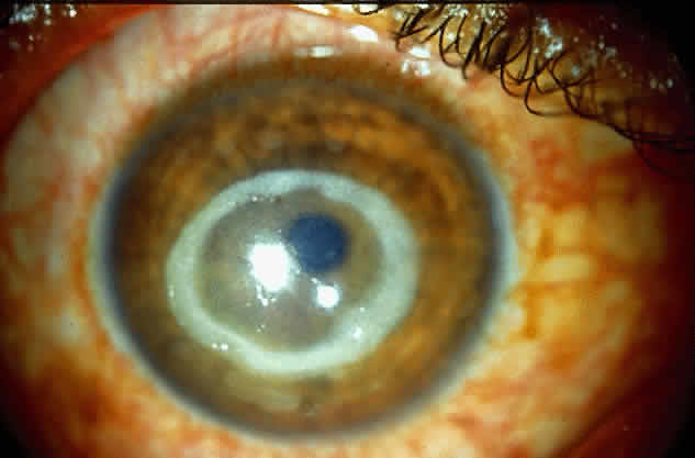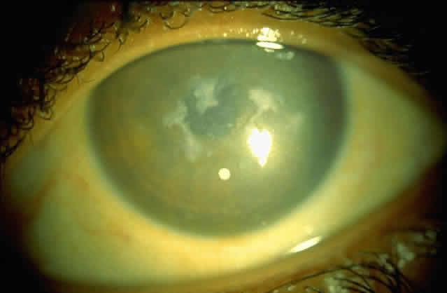 cause a chemical burn in the eye. The extent of these harmful eye practices is not well known, but data from African countries indicate that they may be responsible for a significant proportion of childhood blindness (26% in Malawi, 20% in the United Republic of Tanzania).3 Usually such remedies are applied to both eyes, and their effects are often seen in the form of superimposed infections of the cornea. Children often show signs of having been subjected to harmful eye practices, and these cases are often clustered, especially in association with epidemics of measles or in relation to a particular traditional healer. The diagnosis is often difficult, as the patient is often reluctant to reveal the procedure applied. The use of corticosteroids in eye drops and ointments is a dangerous situation, particularly where these are freely available without a prescription. Injudicious usage of topical steroids aggravates infectious diseases such as fungal keratitis and herpes simplex keratitis. |