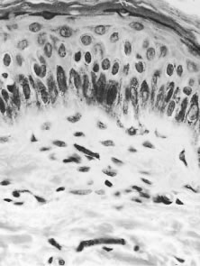 SKIN The earliest changes in the skin in onchocerciasis are mild and are often limited to a perivasculitis.14 In more heavily infected persons, microfilariae can be found, especially at the epidermal-dermal junction (Fig. 7). Live microfilariae are usually not surrounded by inflammatory cells. Later changes include hyperkeratosis, acanthosis, and parakeratosis, with an increase in inflammation and fibrosis. Dermal collagen is disrupted by the deposition of increasing amounts of mucin ground substance and by fibrous scar tissue. With more advanced fibrosis and inflammation, microfilariae become less common in the superficial dermis and are found mainly in the deeper layers. Ultimately, the dermis becomes fibrotic and is covered by a thinned and atrophic epithelium. There are areas of depigmentation and hyperpigmentation (Fig. 8). Some patients have a much more severe, reactive onchodermatitis, often confined to one limb. This was first described in Yemen and is called “sowda,” or black limb. Here, the most prominent histologic change is an extensive infiltrate of plasma cells.14 Microfilariae are seen occasionally in the deep dermis or in skin snips. These patients have a high cellular immune response to onchocercal antigens, which is suppressed if their disease becomes generalized. NODULES Adult worms may at times be found free in fascial planes, although they are far more commonly encapsulated in nodules. Some nodules are palpable and visible, lying subcutaneously over bony prominences, especially the iliac crests, greater trochanters, ribs, knees, ankles, coccyx, and skull. Others, probably more numerous, lie deep and impalpable, attached to the fibrous capsules of joints (especially the hip joint) or close to the periosteum of bones or in intramuscular fasciae. Occasionally, nodules are found in even deeper structures such as intracranially or in the wall of the aorta. When examined microscopically, dense scar tissue surrounds and encases the adult worms, which are coiled up like a ball of string. Developing microfilariae can be found in the uteri of most female worms. Degenerative females often become calcified. Nodules may show an inflammatory infiltrate of varying intensity and occasionally areas of necrosis and liquefaction. THE EYE As in the skin, many of the changes in the front of the eye at least are related to invasion by, and local death of, microfilariae. The pathophysiology of chorioretinal disease is far less clear and may also be related to immune complex disease,12,15 the presence of antiretinal antibodies,16 or other mechanisms.17 Much of the chorioretinal disease seems to start at the level of the retinal pigment epithelium.18 Few eyes have been examined histopathologically, and most of these have had end-stage disease that often obscures the earlier changes.19 Live microfilariae cause little intraocular reaction and may be found in the conjunctive, cornea, posterior sclera, anterior and posterior chambers, vitreous, uveal tract, inner retina, and optic nerve and its sheath. OTHER TISSUES Microfilariae have been found in many of the deeper organs, including the liver, kidney, spleen, pancreas, lung, peripheral nerves, and arteries. They have also been found in tears, blood, urine, cerebrospinal fluid, sputum, vaginal secretions, and peritoneal fluid. |