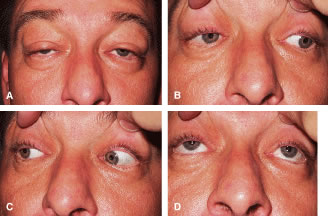 Other tests have been used as adjuncts to evaluate ptosis patients. One such test is called Iliff's sign. This involves everting the eyelid and asking the patient to look up. Failure of the eyelid return to its normal position when the patient looks up indicates poor LPS muscle function.6 Hering's law may be beneficial to assess in a ptosis patient in a preoperative setting. As the examiner manually elevates the ptotic eyelid, the normal eyelid may droop.2 This is known as Hering's law of equal innervation. Hering's law pertains to paired yolk muscles, such as the LPS, which is bilaterally innervated by the oculomotor nerve. The oculomotor nerve derives from the subnucleus of the oculomotor complex, which is a midline structure in the midbrain. A lesion to the oculomotor subnucleus is thought to result in bilateral ptosis. Similarly, elevation of an eyelid both manually, or after ptosis surgery, diminishes the innervation of the eyelids bilaterally and, thus, causes a contralateral eyelid droop.10 Patients with unilateral ptosis should be well informed of this phenomenon before surgery, and they may consequently require correction of the eyelid droop in the contralateral eyelid. Pharmacologic testing to evaluate certain types of ptosis has also been used preoperatively. For example, topical 1/8% phenylephrine drops can be used to assess Muller's muscle response in patients with mild ptosis with suspected sympathetic nerve involvement. Topical 4% to 10% cocaine has been used to evaluate ptosis in patients with Horner's syndrome with a suspected third-neuron lesion. The Tensilon test is used to evaluate patients for MG. These and other pharmacologic tests used to evaluate particular ptosis patients are important in proper diagnosis and management and are described in further detail in this chapter. |