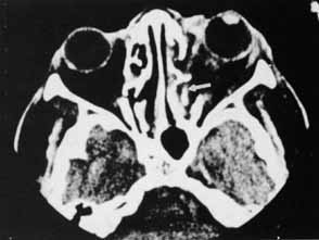 the possibility that nerve function may be restored spontaneously. Isolated roof fractures are rare and do not always require treatment. Incarceration or impingement of the rectus muscles or dystopia of the globe caused by displaced bone fragments are indications for surgical intervention (Fig. 13). Because it is difficult to determine whether limitation of supraduction is due to hemorrhage, contusion, or mechanical restriction by fracture fragments, some advocate waiting 7 to 10 days to allow orbital edema to subside.60 Simple roof fractures that do not involve the inner table of the skull may be repaired by experienced ophthalmologists through a brow or lid crease incision or through a preexisting laceration. However, roof fractures are more often repaired by a neurosurgeon or craniofacial surgeon. The procedure is described elsewhere.61