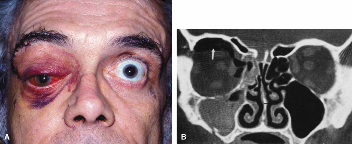 from hemorrhage, contusion, or impingement by fracture fragments.59 Ptosis may result from edema, hemorrhage, or direct injury to the levator