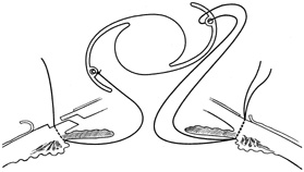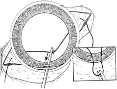 We prefer to use a modification of Lane's technique,85 in which one knot is buried and the other is placed in the posterior lip