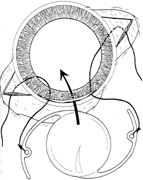 A variety of modifications of surgical technique and lens design intended to reduce some of these risks have been described.39,47,63,86,93,94,102–119 Goals have included limiting the time the eye is open (to reduce the risk of intraoperative complications), decreasing the number of needle passes through the sclera (to reduce the risk of intraocular bleeding), burying the suture knots (to reduce the risk of suture erosion and subsequent endophthalmitis), using direct visualization (endoscopic or mirror needle holder to ensure more accurate placement of the haptics in the sulcus), and, perhaps most importantly, suturing with stronger material and double fixation (9-0 Prolene or 8-0 Gore-Tex to reduce the risk of suture breakage and lens subluxation).102,120–123 Anand and Bowman124 first described using scleral flaps to cover and protect the suture knots. However, Solomon98 found a 73% rate of suture erosion through scleral flaps, suggesting that this approach delays but does not prevent this complication.46,111 Friedberg125 created scleral grooves in which the knots were secured and then protected. Later, Bucci and coworkers126 showed that covering the knot with corneal tissue prevents erosion. Lewis85,120 subsequently reported methods for burying the suture knots in the sclera to avoid erosion through sclera and conjunctiva. Numerous variations for making the suture passes also have been explored. These include either an ab externo or ab interno approach, single or dual passes, and direct passage or capture with a 25- to 27-gauge hollow needle (Figs. 6 and 7). The ab externo approach uses an outside to inside suture pass that allows more precise needle placement and reduces the duration of hypotony.146 Ab interno techniques are performed by passing the suture needle from the inside to the outside of the eye, and have the advantage of being faster. Different IOL designs (i.e., with or without eyelets, one-piece or foldable) and suture needles (i.e., long or short, straight or curved) exist for different techniques. Despite its widespread use, we are unaware of any long-term studies of the outcomes of transsclerally sulcus–fixated PC IOLs. Recent reports of suture breakage raise the specter of an unacceptably high risk of late dislocation. This may be avoidable with the use of stronger, more durable suture materials (to minimize hydrolysis, breakage, and erosion) and more accurate placement of the haptics (to achieve fixation via fibrosis in the sulcus). Despite its obvious advantages and many reports of excellent short-term results, this technique will require follow-up of 10 or more years to fully ascertain its safety and stability. |