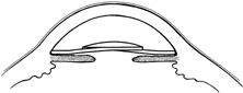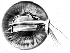 of the incision beneath the thick scleral flap of the wound (Fig. 22). An IOL with a large optic diameter and haptic eyelets, such as