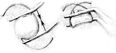care not to tear the posterior capsule or disinsert the zonules. A foldable or solid, one-piece, large-diameter lens now can be inserted into the sulcus. If there is a large posterior capsular opening, with foldable lenses it is sometimes safest to allow the lens to open in the anterior chamber with the haptics above the iris plane, and then sequentially place each haptic in the sulcus with a microhook. For solid, one-piece lenses, the leading haptic is directly placed into the sulcus (again, a Sheets glide may be helpful), and the trailing haptic is pronated into position with forceps while a hook inserted through the paracentesis simultaneously guides the lens optic posteriorly or retracts the iris. Lens centration and stability are assessed as outlined earlier. It is important to remember that the IOL power should be reduced by 0.5 to 1.0 D for sulcus-positioned versus endocapsular PC IOLs. If the optic of the sulcus lens is captured posteriorly through an intact capsulorrhexis, we reduce the IOL power by only 0.5 D. |