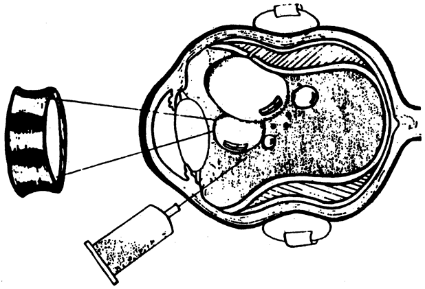 gas bubble with the cornea and lens and to minimize the risk of corneal