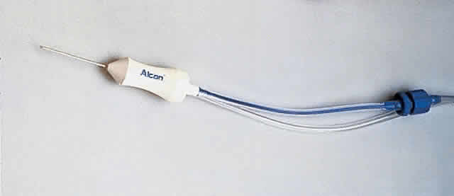Another major benefit of the laser indirect ophthalmoscope is that it can be used to treat breaks that cannot be treated with cryotherapy, such as breaks that lie over choroidal detachments or over previously placed scleral buckles. Finally, this instrument permits postoperative treatment of breaks through a gas bubble. The patient is simply positioned to move the breaks away from the bubble, allowing treatment. Laser photocoagulation also can be delivered through an endoprobe.126 This technique allows precise placement of laser burns such as around a retinotomy site. In addition, particularly with the wide-field viewing systems, endophotocoagulation is an excellent means to apply PRP. |