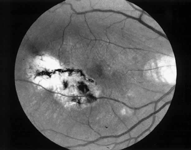 between photoreceptors and the RPE. For the past 20 years, the mainstay of management of choroidal neovascular membranes has been ablation of the tissue with light energy via laser or xenon photocoagulation. A series of excellent randomized, controlled, prospective studies conducted by the Macular Photocoagulation Study (MPS) Group established the superiority of laser photocoagulation over observation in a number of settings.3–10 The marginal benefit of applying laser to subfoveal membranes has prompted evaluation of alternative means of eradicating subfoveal neovascularization.9,10 |