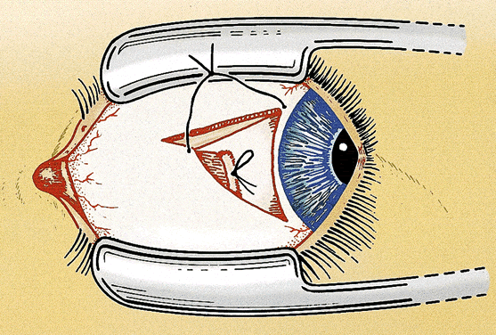 is covered with conjunctiva after the adjustment and ocular lubricants