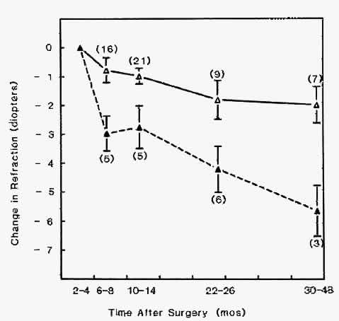 average of 4.75D of myopia over a 20-month postoperative period, whereas
