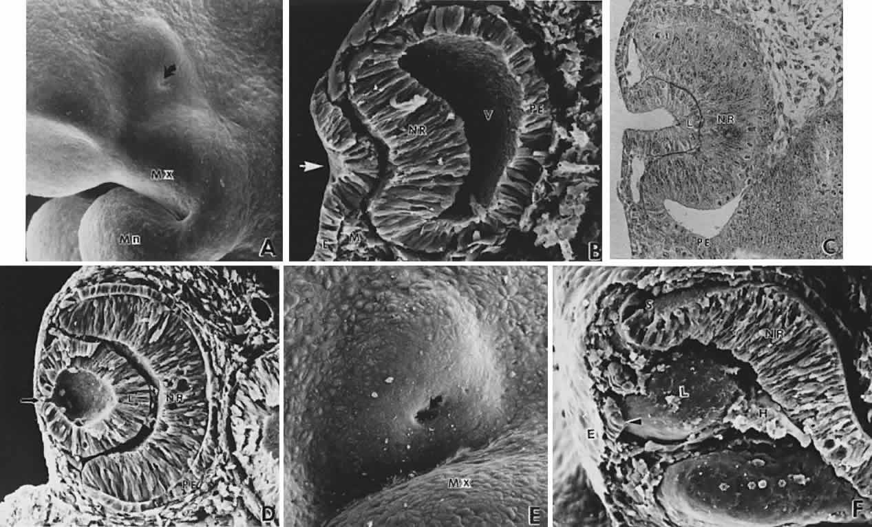 The specimens illustrated in Figures 4, 9, 11, 12, 38 were prepared in the laboratory of Kathy Sulik, University of North Carolina. Sulik's advice and guidance are gratefully acknowledged. Material from embryos and fetuses of known developmental stages were obtained through the courtesy of the late George K. Smelser. The source of some of the fetuses was the Population Council, Rockefeller University, New York. Some nonhuman embryos and fetuses were received from the Bionetics Research Laboratories of Litton Bionetics, Kensington, Maryland. In all experimental animal tissues, timed matings were used to control gestational age precisely. Photomicrographs from the collection of Ft. Vrabec, Chairman, First Eye Clinic, Charles University, Prague, the Czech Republic, are gratefully acknowledged. The technical assistance of Mary Rayborn and Deborah Dehart is acknowledged. |