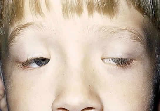 Congenital ptosis is most commonly seen because of the absence or fibrotic nature of the levator palpebrae superioris. It may be unilateral or bilateral and associated with weakness of the superior rectus muscle from which the levator is derived. In the “jaw winking” phenomena, ptosis appears when the patient chews. This is due to an abnormal association of the nerve to the levator muscle and the nerve to the external pterygoid muscle. Many abnormalities exist of eyelid margin differentiation. Distichiasis is a condition in which aberrant lashes develop at or near the orifices of the meibomian glands. Ankyloblepharon is an abnormal fusion of the lid margins from incomplete separation of the lid folds. The fusion may be complete but is more common at the inner canthus. A variant is “ankyloblepharon filiform adnatum,” in which the lid margins are connected by multiple fine bands. Blepharophimosis is a horizontal narrowing of the palpebral aperture. The triad of blepharophimosis syndrome includes ptosis, horizontal shortening of the palpebral fissures, and epicanthus inversus (Fig. 7). Telecanthus, lower eyelid entropion or ectropion, hypoplasia of the superior orbital rims, a poorly developed nasal bridge, and hypertelorism can also be seen with this condition. Epiblepharon is an additional fold of skin running horizontally below the lower eyelid margin. It often is associated with loss of the eyelid crease and may be partly due to a lack of deep anchoring of the superficial skin to the orbicularis oculi muscle. The weight of the skin fold may rotate the lower lid margin inward, creating an entropion. With growth of the face and nasal bridge, epiblepharon usually diminishes. It is seen more commonly in Asian eyelids. Euryblepharon is a rounding or almond-shaped deformity of the lower lid at the lateral canthal angle. It may be associated with an inferiorly displaced lateral canthal tendon. Congenital entropion is characterized by an inward turning of the eyelid margin due to hypertrophy of the orbicularis muscle, defects in lower lid retractor, or tarsal abnormalities.12 Congenital ectropion is characterized by eversion of the eyelid margin. It is rarely seen in the upper lid. In the lower lid, it is usually seen with Down's syndrome or blepharophimosis syndrome. |
