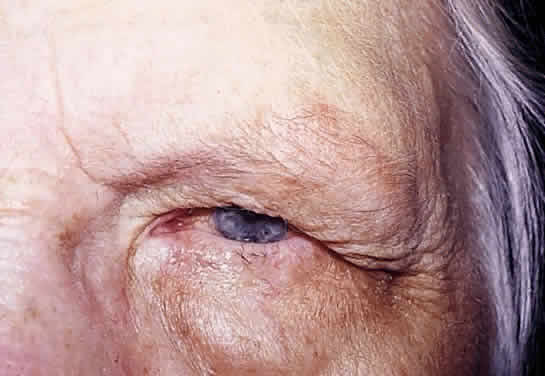 the lid margin in white women and 7 to 8 mm above the lid margin in men. It