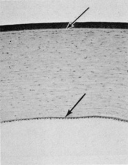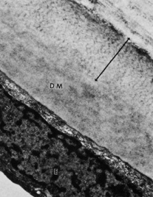 specular microscopy (Fig. 21). Cross-sectional views with electron microscopy show that