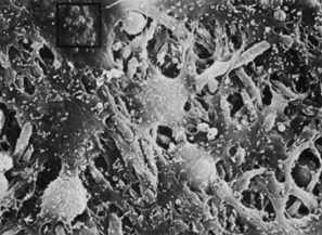 with associated collagen. This meshwork of cells does not form a continuous, impermeable