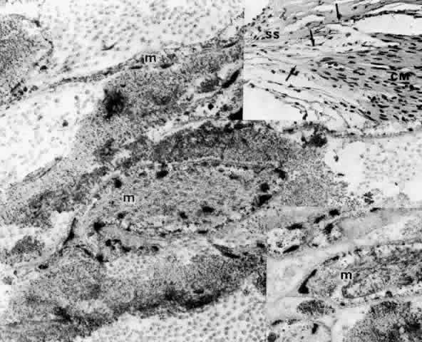 the ciliary ganglion.51,79 An extensive sympathetic fiber plexus is present in the ciliary process subepithelial region, deriving from sympathetic nerves accompanying the ciliary arteries.80 Whether any fibers from this plexus innervate the ciliary epithelium in the human is uncertain.81 Some sympathetic nerves also reach the ciliary muscle by means of the sympathetic root of the ciliary ganglion and the long ciliary nerves. It has been estimated that 1% to 2% of ciliary muscle terminals in monkeys are of sympathetic origin,80 although their function is uncertain. A surprising degree of simultaneous degeneration and regeneration of autonomic nerve fibers has been shown in the anterior ciliary muscle of normal rhesus monkeys during aging, interpreted as evidence of a continual renewal process.53 The sensory innervation of the ciliary body has not been well studied in the human, but sensory end bulb-like structures have been described by silver staining in the stroma between the muscle fibers.1a Similar structures recently described in the scleral spur are postulated to be mechanoreceptors.82 This work was funded in part by Research Grant EYO1602 from the National Eye Institute, National Institutes of Health. The author acknowledges Patricia A. Licari, BA; Robert N. Wallace, BS; and Yue Qi, MD, for expert technical assistance. |