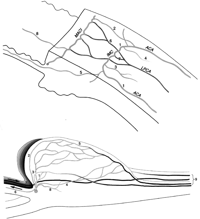 to form an anterior episcleral plexus around the corneal limbus.66,69 The remaining vessels divide into 10 to 20 branches before or after penetrating