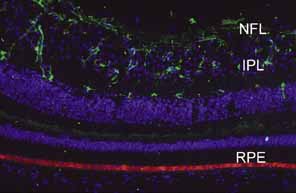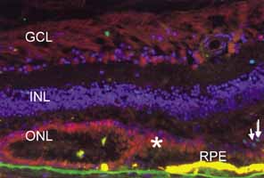 The cells within the retina can be divided into neuronal, glial, and vascular components. The neuronal cells are responsible for the primary function of the retina (i.e., conversion and transmission of incoming light into an electrical signal perceived by the brain). This is achieved through intricate synaptic connections among three different classes of retinal neurons, namely, photoreceptors, interneurons, and ganglion cells. A detailed understanding of the cellular morphology of these neuronal cells and their synaptic connections has been possible in recent years with the advent of electron microscopy, immunohistochemistry, and Golgi-impregnated preparations. Morphologically, 55 different types of retinal neurons have been identified in the mammalian retina to date. The function of 22 of these cell types is known. Each morphological type of retinal neuron appears to have a distinct physiological function. As further studies improve our understanding of the retina's role in processing the visual signal, the function of the remaining identified cell types will become apparent. |