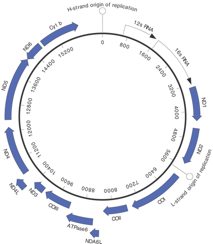 genes, a small number of diseases are considered in depth. ‡ http://www.sph.uth.tmc.edu/RetNet/. DISEASES CAUSED BY MITOCHONDRIAL DNA DEFECTS Many variations in sequence of the mitochondrial genome of humans are known, and these are cataloged at http://www.mitomap.org. The ophthalmologist frequently is the first physician to notice symptoms associated with mitochondrial defects. This is because of the high energy use of eye tissues, in particular the retina. Signs most often noted are bilateral optic neuropathy, ophthalmoplegia with ptosis, and pigmentary retinopathy. There are several mitochondrial DNA defects involving ophthalmic problems, but we discuss only two of these. Those not discussed here but recently reviewed by Newman and colleagues50–52 include lethal infantile mitochondrial disease; myoclonic epilepsy and ragged red fiber disease; mitochondrial myopathy, encephalopathy, lactic acidosis, and stroke-like episodes; Leigh's disease; neurogenic muscle weakness, ataxia, and retinitis pigmentosa; and lethal infantile cardiomyopathy. The two disorders discussed here are chronic progressive external ophthalmoplegia/Kearns-Sayer (CPEO/KS) syndrome and Leber's hereditary optic neuropathy (LHON). (We consider a third mitochondrial defect with somewhat similar properties, gyrate atrophy, later in this section. Gyrate atrophy differs particularly from those discussed here because its gene is carried in the nucleus, rather than on the mitochondrial genome.) The eye is susceptible to mitochondrial diseases because of its high demand for ATP, and the retina has the greatest minimum requirement for ATP before the manifesting disease in most tissues. ATP synthesis takes place in the mitochondrion where the tricarboxylic acid cycle, electron transport (oxidative phosphorylation), and parts of the urea cycle lie, whereas glycolysis occurs in the cytosol. The mitochondrion contains its own genome, a 16,569-bp supercoiled covalently closed double-stranded DNA circle that encodes 13 polypeptides, ribosomal 16S and 12S RNAs, and 22 tRNAs. The mitochondrial genome replicates within the mitochondrion independently from the nucleus. The mitochondrial genes are transcribed and their proteins translated exclusive of the standard cellular machinery. The 13 mitochondrial polypeptides form essential parts of the oxidative-phosphorylation (OXPHOS) cascade. However, the nucleus encodes an additional 50+ polypeptides that also constitute the OXPHOS complexes. Five complexes of proteins in the mitochondrial inner membrane function in concert to make ATP in the respiratory chain. Complex I contains the mitochondrial DNA (mtDNA)–encoded polypeptides ND1, ND2, ND3, ND4, ND4L, ND5, and ND6, plus 18 to 32 polypeptides encoded by the nucleus. Complex II contains no mitochondrially encoded polypeptides. Complex III contains the mtDNA cytochrome b and approximately nine nuclear DNA (nDNA) polypeptides. Complex IV (cytochrome c oxidase) contains three mtDNA genes: COI, COII, and COIII with 10 nDNA-encoded proteins. Complex V (ATP synthase) has 10 nDNA polypeptides, the mtDNA ATPase 6, and eight polypeptides. We will observe that a combination of cell physiology, environment, and genetics leads to the manifestations of mitochondrial disease in the eye. The Mitochondrial Genome Is Inherited Maternally Maternal inheritance implies passage of an allele from mothers to both sons and daughters. The daughters pass the allele to both their male and female offspring in equal frequency, but sons do not pass the allele to their children. This pattern is consistent with the pattern of inheritance of mitochondria and mtDNA. The egg contains large numbers of mitochondria passed from the mother, but the sperm, by comparison, has very few. It is almost impossible for any male mitochondria from the sperm to successfully pass into the egg during fertilization. One can contrast “maternal inheritance” versus “X-linked inheritance.” In the former, affected carrier mothers pass a defective gene to sons and daughters who both become affected. In X-linked recessive diseases, affected sons do not pass the gene to their sons, but their daughters are obligate (but unaffected) carriers who pass the allele to both carrier females and affected sons with a 50% probability. In small pedigrees it may be impossible to distinguish among possible modes of inheritance, whether the disease is dominant, recessive, autosomal, X-linked, or maternal. An additional complication is that mtDNAs are not necessarily homogeneous in sequence within an individual. Even within an individual, the fractional abundance of one mitochondrial sequence may vary, from tissue to tissue and from cell type to cell type: Allele 1 might be 14% in polymorphonuclear neutrophil (PMN) leukocytes and 40% in liver cells of one individual, whereas allele 1 might be 90% in PMN leukocytes and 70% in liver cells of another person. The small numbers of the mitochondria and nonuniform division of these between daughter cells during replicative segregation can give rise to different frequencies of the alleles of the mitochondrial genome in different cells. The terms describing the uniformity or heterogeneity of the mitochrondrial genome are “homoplasmy” and “heteroplasmy.” The definition of homoplasmy is a homogeneous sequence of the mitochondrial genome. Heteroplasmy refers to the presence of multiple alleles of the mitochondrial genome. The consequence for a maternally inherited mitochondrial gene is that there may be variable expressivity among family members. There also is a high probability of partial penetrance due to random drift toward fixation, which is likely to be more rapid because of the small numbers of mitochondria per cell. The degree of severity will vary with the fraction of the defective allele in the critical tissue or cell. For example, the photoreceptor is packed with well-ordered mitochondria in the inner segment, and with very high energy demands, 