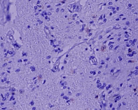 Glial Elements As in the CNS, the glial elements of the optic nerve include astrocytes, oligodendrocytes, and microglia. The astrocytes and oligodendrocytes are derived from the neuroectoderm15; the origin of the micro-glia is controversial. Most studies support their origin from mesoderm rather than ectoderm.16,17 ASTROCYTES. All of the astrocytes in the optic nerve and optic nerve head appear to be fibrous, with a large cell body and many long, coarse processes. Astrocytes line the borders between axons and other tissues of the area, in particular the vitreous interface, choroid, sclera, and capillaries. With H&E staining, the cell processes are not demonstrable; their nuclei appear to be naked, and the cell bodies are likewise arranged into longitudinal rows with interspersed astrocytes and oligodendrocytes. Under electron microscopy, the astrocytes are characterized by rich processes, extensively lobulated nuclei, numerous intermediate glial filaments, glycogen granules and a wide type of granular endoplasmic reticulum. In the optic nerve there are two subtypes of astrocytes, types 1 and 2, based on differences in the intensity of staining with anti-GFAP and A2B5 antibodies. Type 1 astrocytes, which are GFAP positive and A2B5 negative, are located at the periphery of the nerve and form the glial limitans.18–20 Type 2 astrocytes are positive for GFAP and A2B5. These are primarily located in the interior of the nerve and form transversely oriented processes that end on blood vessels (Fig. 4). Functionally, astrocytes provide a scaffolding that supports the axons and maintains a stable biochemical environment around the nerve fibers. At the site of axonal loss, astrocytes can form scar tissue, known as gliosis. OLIGODENDROCYTES. Oligodendrocytes can make and maintain myelin sheaths of the optic nerve axons, similar to the function of Schwann cells in the peripheral nerves, but without forming a basement membrane around the myelin sheaths.21 Oligodendrocytes are normally absent in the retina and optic nerve head, appearing posterior to the lamina cribrosa. Morphologically, they show small, round or oval nuclei, a granular cytoplasm, and delicate branching processes that terminate in loops. Oligodendrocytes are located in groups between the axons, usually near the center of the axonal bundles, with their processes running parallel to the axons. In contrast to the astrocytes, oligodendrocytes are devoid of footplates; they do not exhibit any connection with connective tissue septa, and they lack the ability to regenerate once injured. When viewed by electron microscopy, oligodendrocytes appear moderately electron dense compared with astrocytes. The nucleus is round or oval and is usually eccentrically located, leaving a large mass of cytoplasm at one pole of the cell. The nuclear content exhibits a slight clumping of chromatin that appears as a rim beneath the nuclear envelope. The cytoplasm is rich in ribosomes, either free or associated with the endoplasmic reticulum. The Golgi complex is well developed. The oligodendrocytes have neither glycogen granules nor bundles of intermediate filaments (see Fig. 3). When analyzed by immunohistochemical methods, oligodendrocytes stain negative for GFAP but positive for galactocerebroside, myelin basic protein, and neural cell marker HNK-1/N-CAM.5 MICROGLIA. Microglia are the phagocytes of the CNS. In the normal optic nerve, these cells are ordinarily present in small numbers, and most are found within bundles of axons, with some situated adjacent to the glial septa and to blood vessels.17 Normally, these cells are irregularly oval, containing small nuclei and many long and slender branching processes. Under electron microscopy, microglial cells have small, heterochromatic nuclei. The cytoplasm shows vacuoles, granular endoplasmic reticulum arranged in long, narrow strands, and various inclusions, including large dense bodies, lamellar bodies, myelin bodies, and other forms of cellular debris (see Fig. 3).17 Immunohistochemical studies reveal that microglia in the retina are positive for Griffonia simplicifolia B4-isolectin, CR3 complement receptor, leukocyte common antigen (CD45), and antimacrophage marker CD68 (Fig. 5).22,23 These cells do not contain glial filaments.