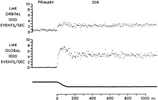 This hypothetical scheme was conceived prior to the recognition of pulleys. It is now known that the orbital layer fibers play a role in positioning the pulleys. Nonetheless, the considerations about motor unit size, mechanical ripple etc. are valid. PROPRIOCEPTION Skeletal muscle afferents were recorded in the classic work of Matthews.399 He noted two types of response during muscle contraction: one that decreased or disappeared and a second one that appeared or increased on development of muscle tension. The first type is ascribed to the spindles and the second to tendon organs. Further work has shown that spindle primary endings (annulospiral) respond to length plus velocity of stretching, and that secondary endings (flower spray) respond mainly to length.400 Golgi tendon organs, while responding poorly to passive stretch, do fire readily on contraction of the specific fibers to which they are attached.401 Early recordings of extraocular muscle afferent fibers were made in the goat.402,403 The responses were similar to those of skeletal muscle. Motor fibers to intrafusal fibers (γ efferent fibers) could be found, which on stimulation increased the sensitivity of the stretch receptors.404,405 Animals that do not have classic spindles(e.g., cat). may nonetheless demonstrate afferent responses similar to those of primary and secondary endings.224,406-408 Such responses must come from the atypical spindles. The presence of a stretch reflex for extraocular muscle has been claimed for the goat,403 rabbit,409 and cat.410 However, recordings from motor neurons in the cat411 (and a thorough series of experiments recording from motor neurons in the monkey) provide strong evidence against a stretch reflex.412 Presumably, humans also lack a stretch reflex. The eye muscles are not controlled by the α-γ co-activation postulated in the servo theory of skeletal muscle control.413,414 In the goat, Whitteridge found that the γ fibers fired after the α fibers, and that the afferent fibers showed an initial decrease in firing rate at the onset of muscle contraction.415 If muscle afferents do not participate in a stretch reflex, they may neverthelessl play a role in sensation, conscious or unconscious. Spatial localization is performed differently after various types of surgery on the muscle tendon.416 One possible reason for this is a differential effect on afferents from the myotendinous sensors. Experiments in which an anesthetized, occluded eye had been moved with forceps showed that the subject was unable to tell if the eye had been deviated or if an intended eye movement had been prevented by the experimenter.417,418 It seems that perhaps trained observers under optimum conditions can only feebly discern the direction of pull,419 although it is difficult to be sure in this kind of experiment that all additional clues have been avoided. Although the eye muscle afferents may not provide a conscious sensation of eye position, the information may yet be used by the oculomotor system at an unconscious level to check up on the proper execution of movement commands.420 It has been shown in numerous experiments that nonretinal knowledge of eye position is avail able.421–423 This knowledge probably comes from monitoring of the motor outflow to the eye muscles (efference copy or corollary discharge).424 The muscle afferents are more likely useful in the long-term maintenance of control of the proper level of efferent signals.425 In this regard it is of interest that the eye muscle afferents have been traced to the cerebellum.426–428 The cerebellum has been found to mediate the change in gain of the vestibulo-ocular reflex that occurs on wearing reversing prisms.429 Although this effect is mediated through retinal input, there may be other motor adjustments that require the action of the muscle afferents. Some of the complexities of eye muscle proprioception are usefully reviewed by Carpenter423 and Steinbach.430 Although a function for extraocular afferents is hard to establish in the adult, they have been shown to play a role in recovery from post-critical period reversal of monocular deprivation (in the cat). Removal of tonic input from the experienced eye to visual cortical neurons can reveal the presence of potentially functional inputs from the deprived eye, but only if afferents from the experienced eye are also blocked. 431 Which afferents play this role has not been established. Extraocular proprioception plays a role in the development of the neural processes that support stereopsis. During the postnatal critical period of binocular development (in the cat), section of proprioceptive afferents (i.e., section of nerve V1), either unilaterally or bilaterally, leads to impaired stereopsis with no change in eye alignment Developmentally, only half of visual cortical neurons in the cat are binocularly responsive when nerve V1 is sectioned unilaterally during the critical period for binocular development. This occurs regardless of whether the cat is reared in light or dark. Bilateral section does not affect cortical binocularity.432,433 |