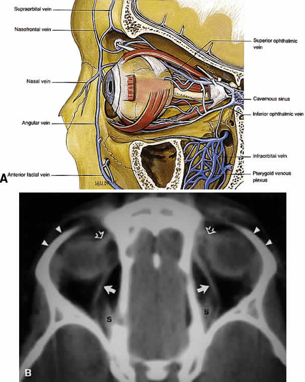 apex (the superior and inferior orbital fissures, optic canal), the CS, and