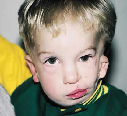 cleft has an obvious lower lid and medial cheek defect with tears exiting